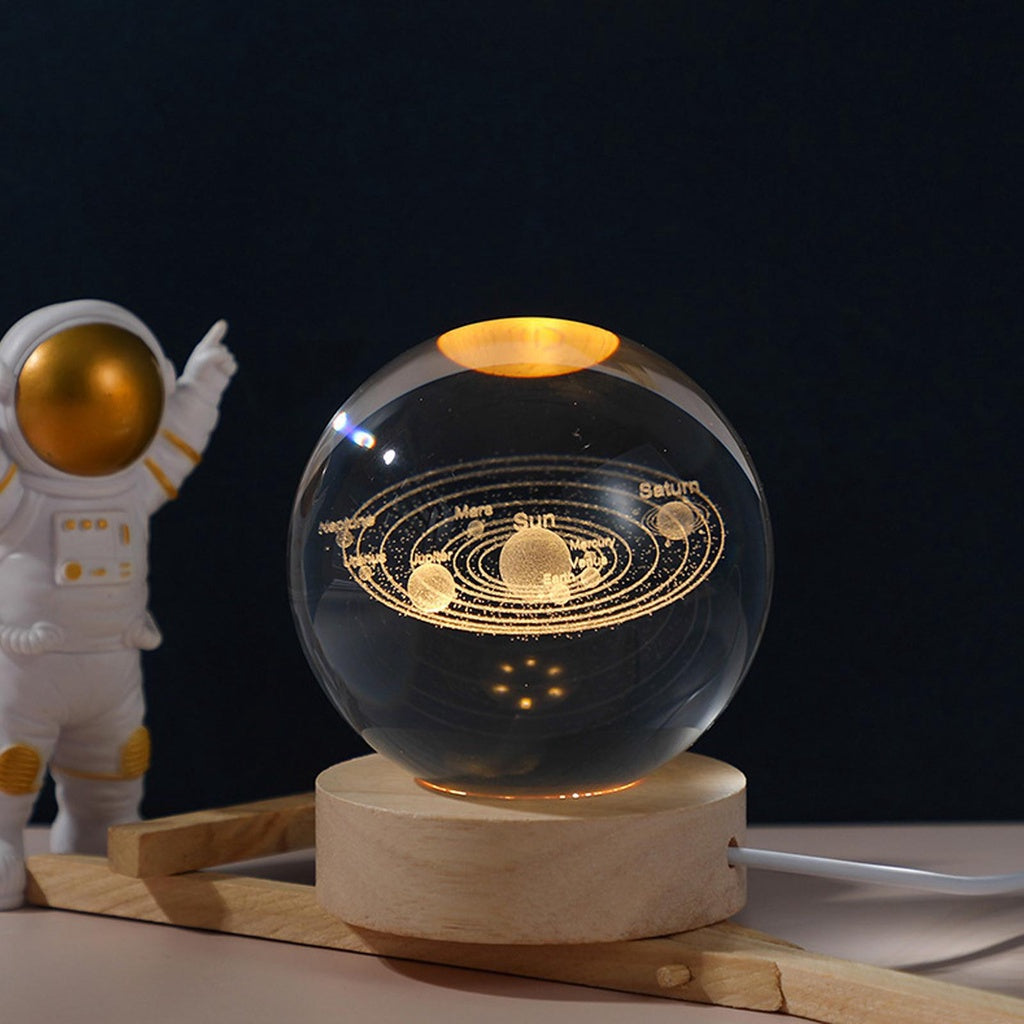 New2024 ! Lâmpada Noturna Galaxy Crystal Ball 3D , 2.4 Inch Com Base De Madeira , Holográfica De Gravação 3D