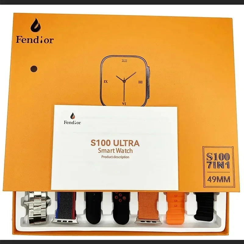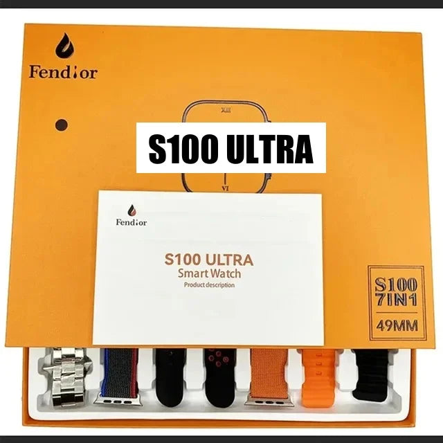 Smartwatch S100 ultra smartwatch 7 pulseiras de relógio 2.2hd amoled tela circular monitoramento ecg reloj inteligente com caso protetor