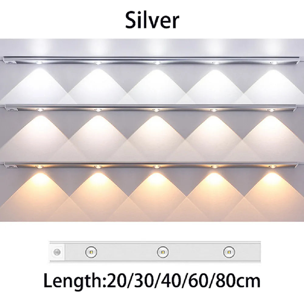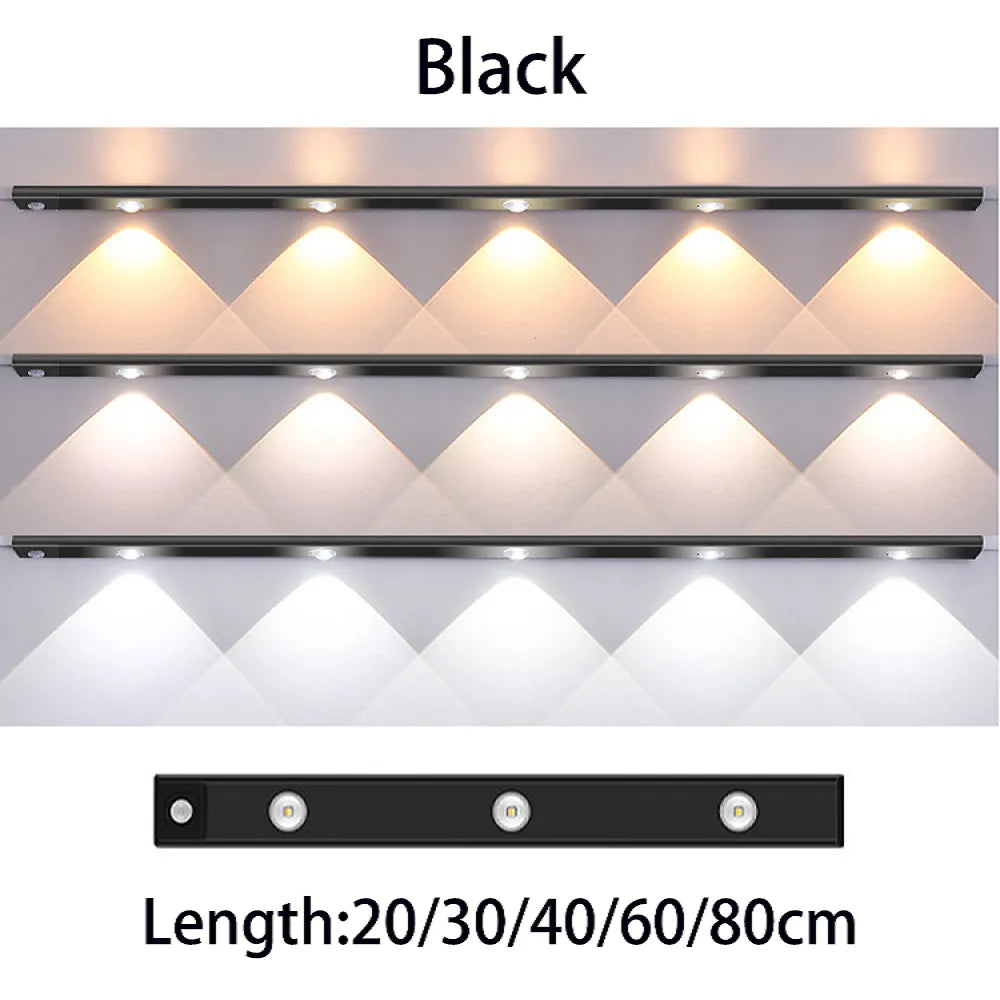 Pzsunly luz de armário recarregável usb, sensor de movimento, luz led para iluminação de armário de cozinha, guarda-roupa, 20cm/30cm/40cm/60cm/80cm